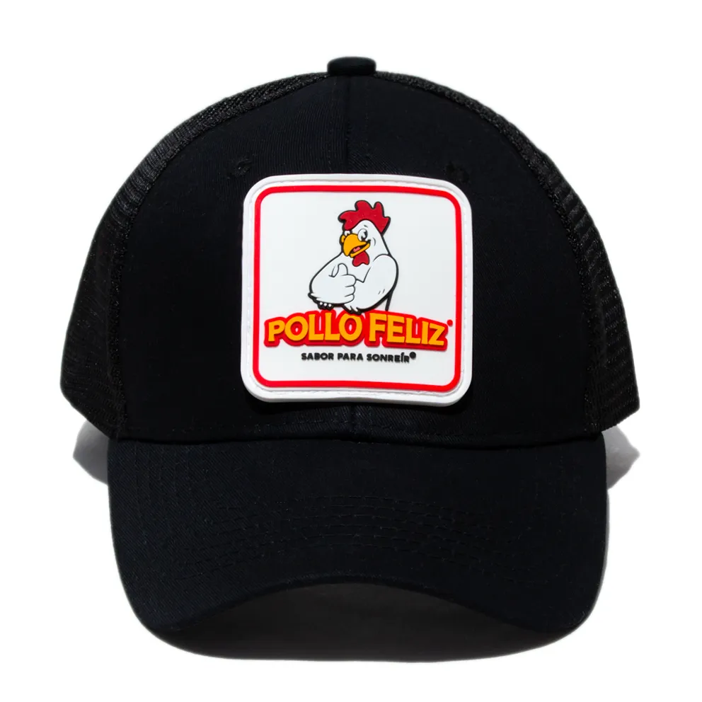 Gorra negra con el nuevo logo de Pollo Feliz